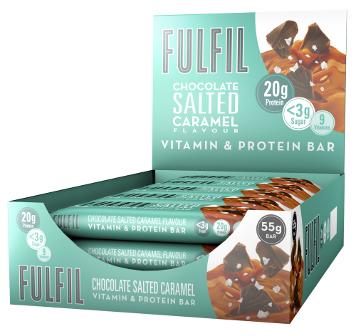 An indulgent milk chocolate coating surrounds a soft, silky salted caramel centre topped with a layer of crunchy crispies, with all the added benefits of 20g protein, low sugar and 9 multivitamins.