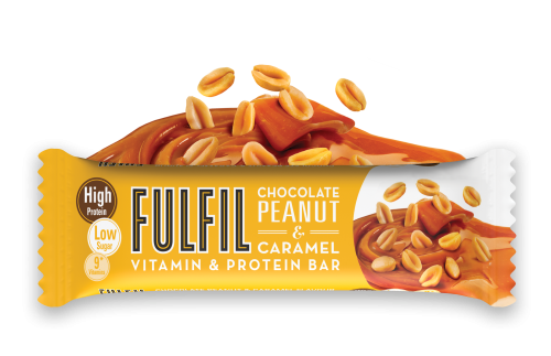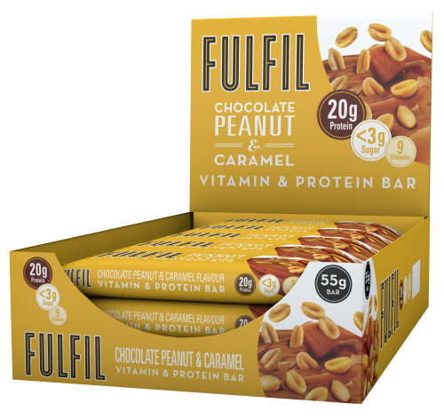 Milk chocolate encases a layer of caramel mixed with crunchy crispies surrounding a rich peanut centre all with only 2.1g of sugar, 20g of protein and 9 multivitamins.